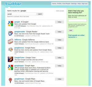 Mal no lo tiene que estar haciendo Twitter cuando la propia Google se ha apuntado al carro y han creado hasta 46 perfiles en Twitter, para compartir información, comentarios, charlar, etc… en la Red con todos aquellos fans del buscador por excelencia.