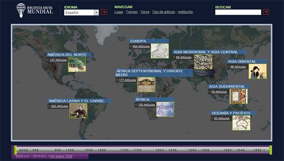 En esta ocasión toca hablar de la Biblioteca Digital Mundial, un espacio creado por un nutrido grupo de bibliotecas y apoyadas por ONU que pretende poner a disposición de los internautas un sin fin de documentos e información, para su libre disposición, en varios idiomas (incluido el castellano). Siguen, de este modo, ejemplos ya realizados como la digitalización de la biblioteca del Congreso de EE.UU.