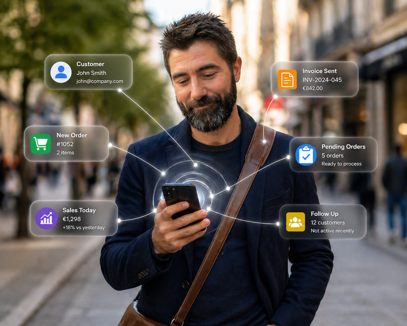One of the most interesting moments was when we connected image input. He could take a picture of a business card, and the system would extract the data and create a new customer automatically. We also tested voice commands. On his way to the office, he can now ask for a list of customers who hadn’t bought anything in the last few months and get a clear list of people to call by the time he